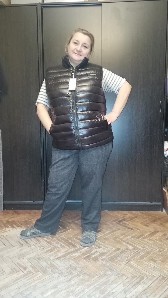 Muito obrigado pelo colete. Mas! Para o meu tamanho 56, deveria ter pedido 6xl. Tamanho pequeno. Isso para uma camiseta, mas com um moletom só poderei usar aberto.. Mas eu ainda gosto muito dela. E muito quente, enquanto tirava fotos, fiquei toda molhada 🤣