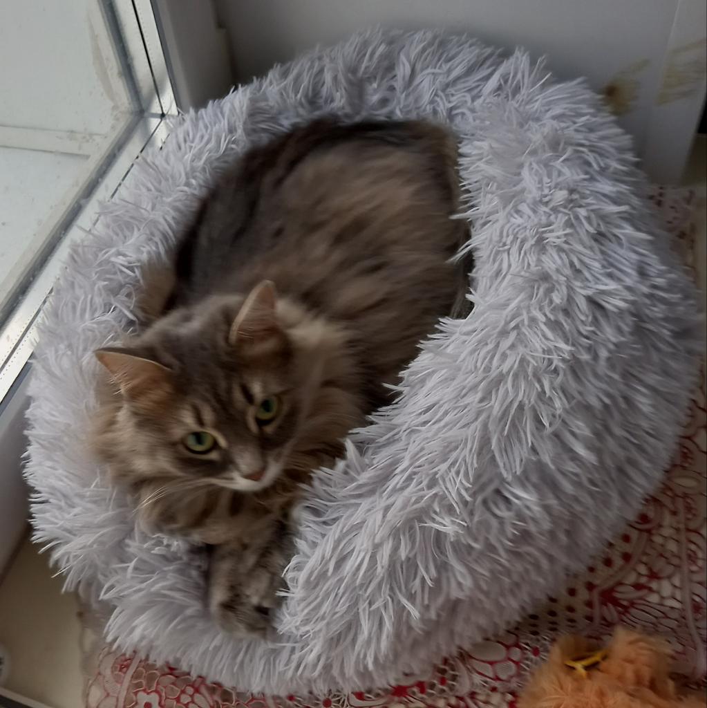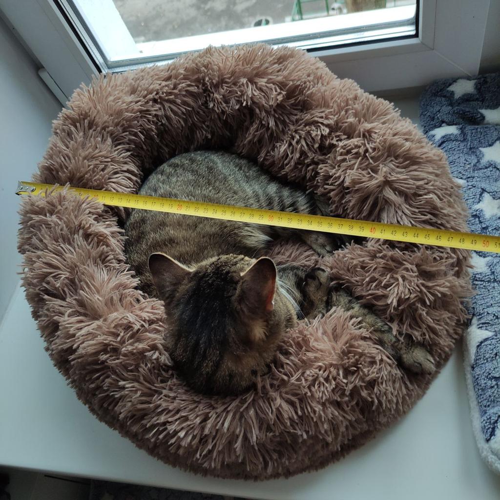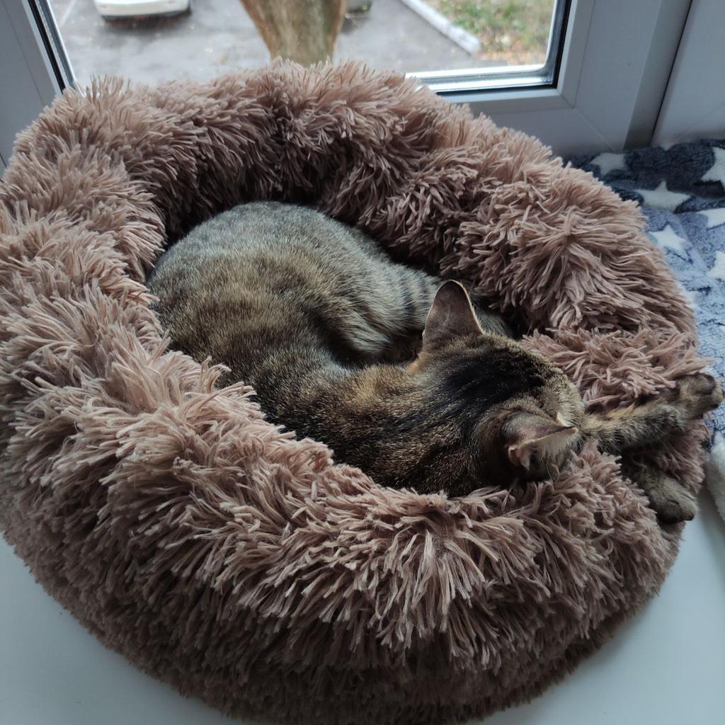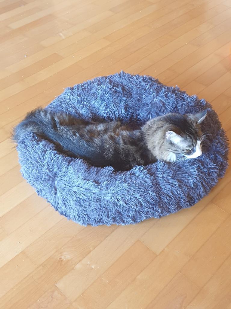 Donats ficam lindos, são super fofinhos e fofinhos. Muito bem acolchoado no meio. Infelizmente, nossos 2 narizes de pelo dão um amplo espaço, nem querem colocar as patas nele. O tamanho de 60 cm é muito bom e seria perfeito para nossos dois coonies. Uma pena