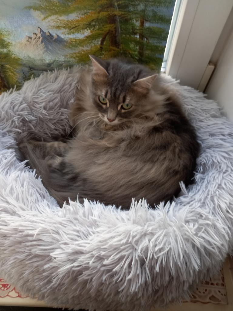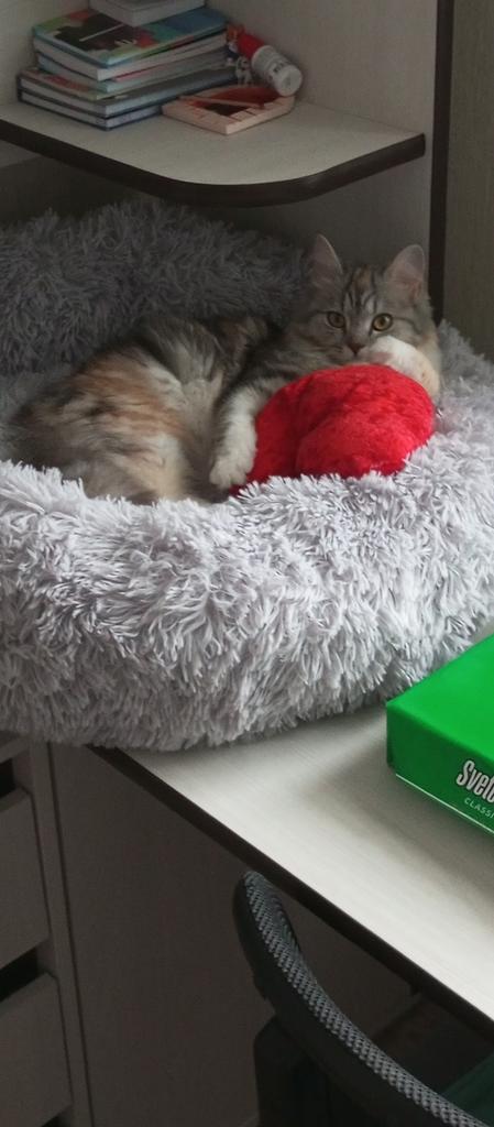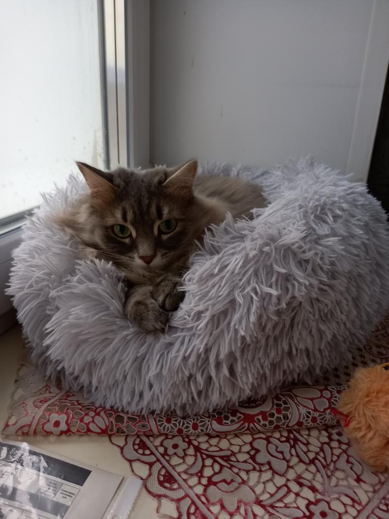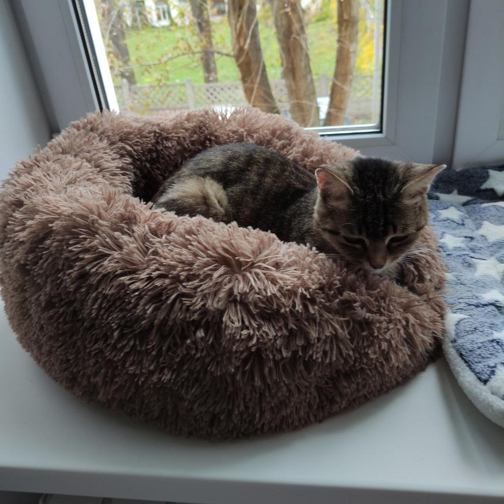 Donats ficam lindos, são super fofinhos e fofinhos. Muito bem acolchoado no meio. Infelizmente, nossos 2 narizes de pelo dão um amplo espaço, nem querem colocar as patas nele. O tamanho de 60 cm é muito bom e seria perfeito para nossos dois coonies. Uma pena