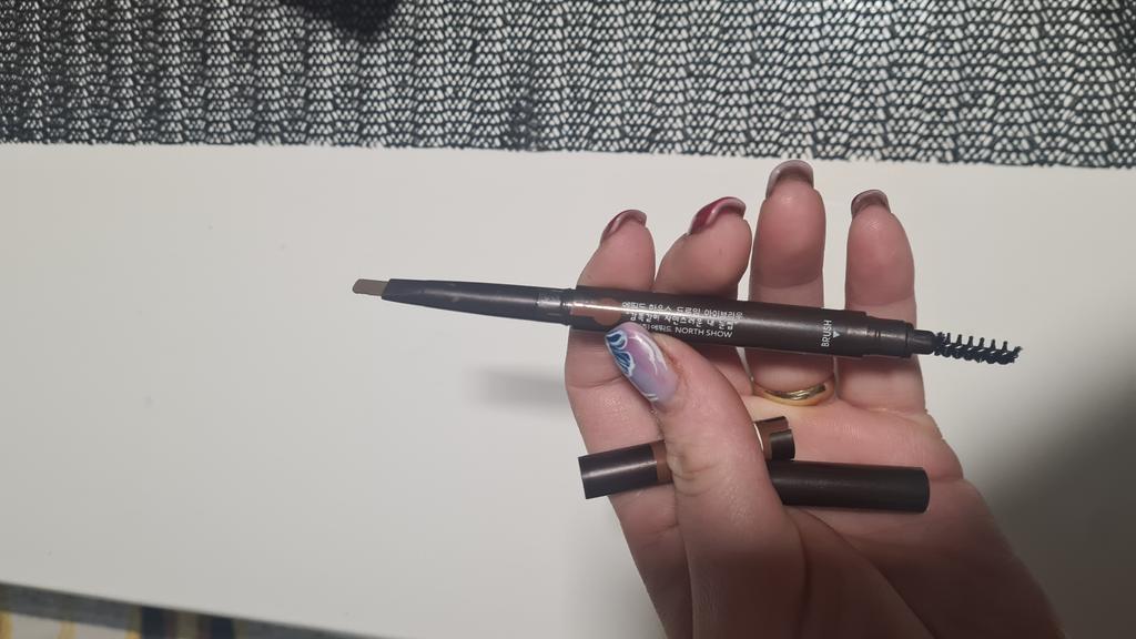 O castanho claro é tão claro que é preciso escovar pelo menos 10x sobre as sobrancelhas para conseguir um efeito. Praticamente na outra ponta o pincel para sobrancelhas. É o pior lápis de sobrancelha que já comprei