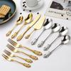 Conjunto de talheres de ouro oco do vintage talheres de aço inoxidável ocidental faca garfo colher de gelo louça conjunto festa de casamento talheres