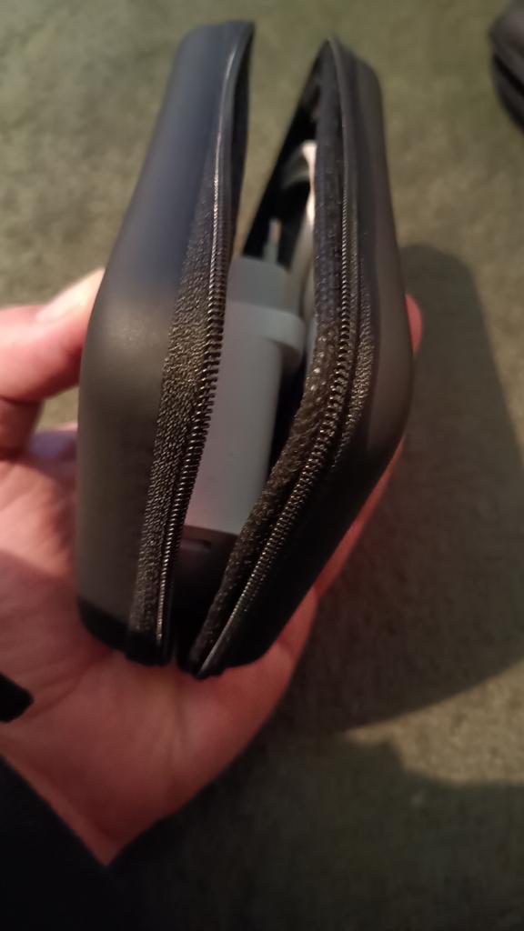 Tem um cheiro muito desagradável Mas as dimensões correspondem e cabem o powerbank e os cabos necessários. Eu recomendo.