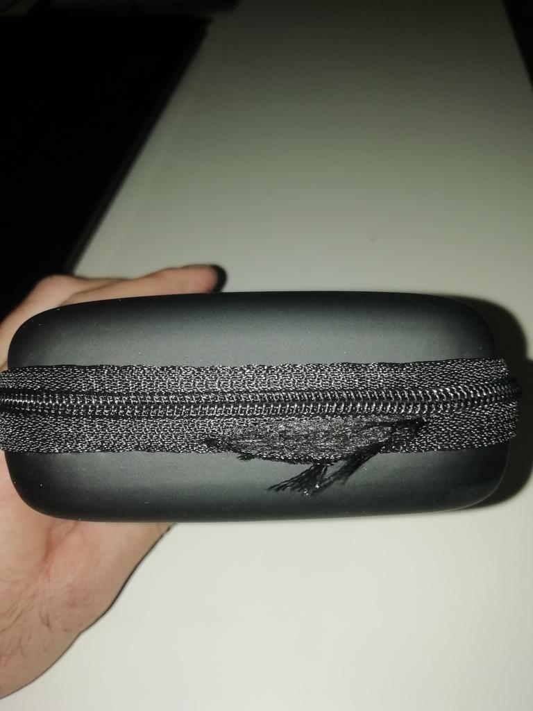 Uma caixa de plástico... preta... com zíper. O que mais posso dizer.?