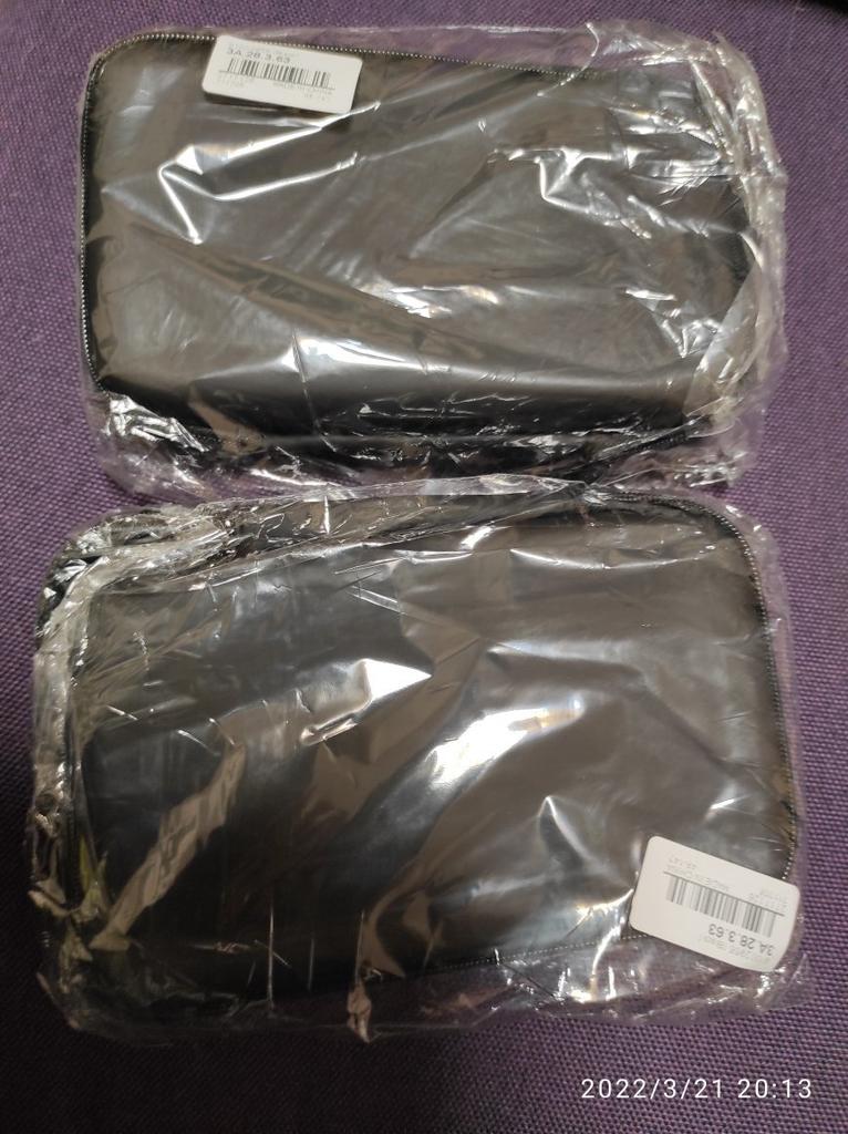 Outra caixa de plástico com zíper. O último foi para meus dentes postiços e cola de dente etc Este é ótimo para manter meu estojo de carregamento de bateria remoto. Espaço suficiente para 6 carregadores de bateria, ...os cabos para telefone e tablet. Mais carregador de rede. Excelente