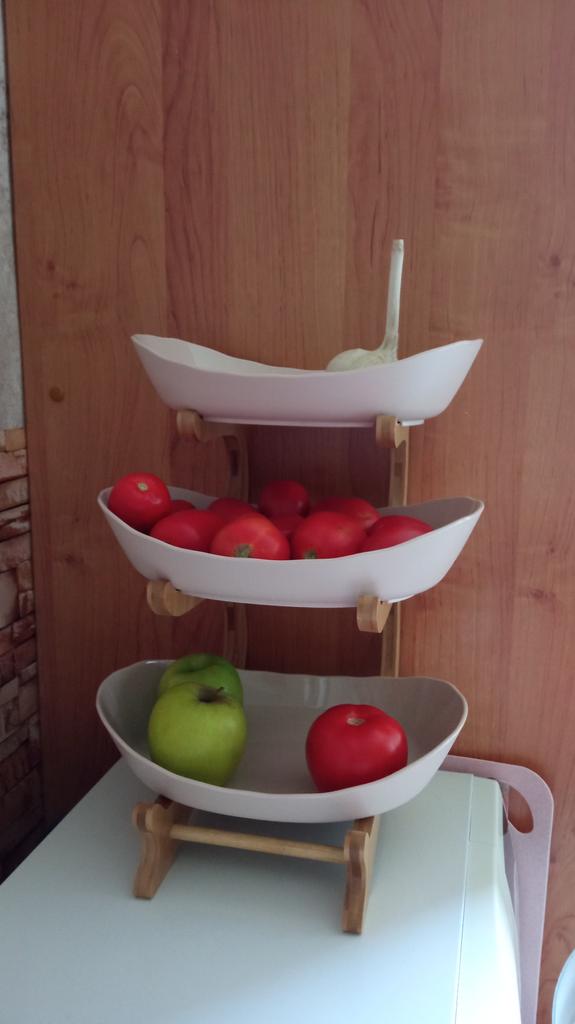 Bandejas de frutas super escalonadas. Eles ocupam pouco espaço. Eu recomendo.