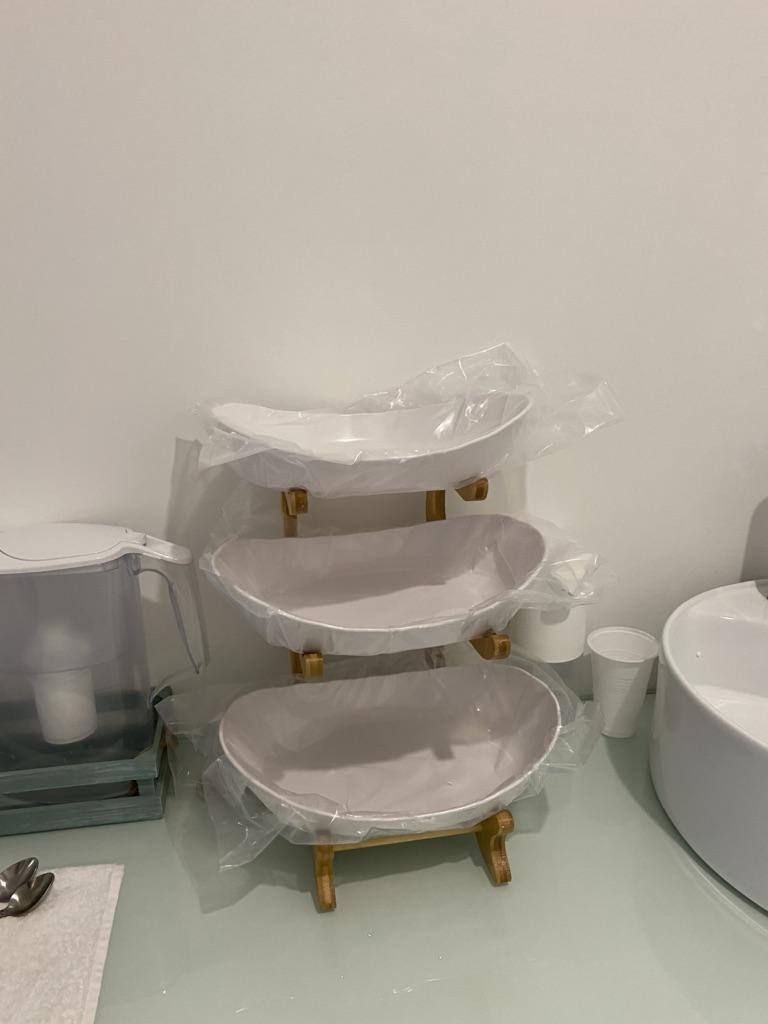 A bandeja de frutas chegou antes do previsto. Tudo como descrito. Muito bonito e útil.