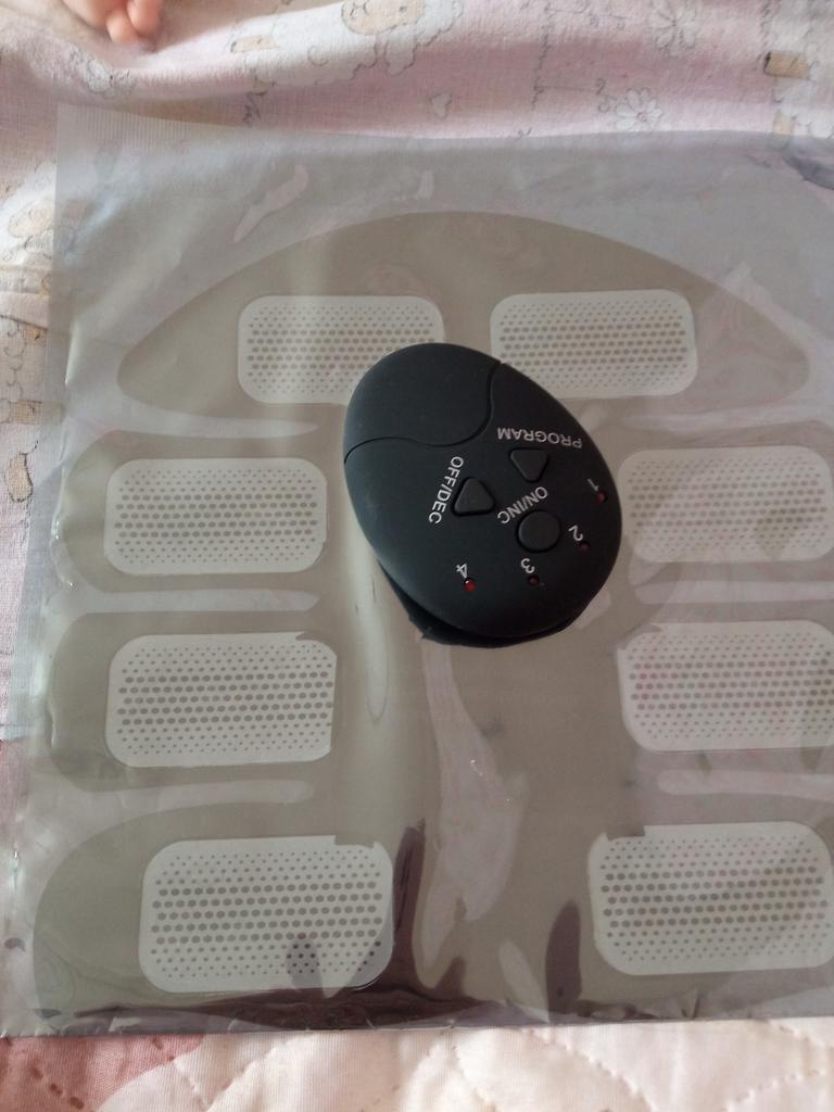 Chegou, funciona, pena que não tem manual. Os programas testo à minha maneira. Potência média, talvez pela falta de manual eu simplesmente não saiba se há opção de aumentar a potência. Duvido que os efeitos com essa potência sejam como na foto, mas o adesivo massageia Já uso há uma semana. Programas dominados, potência fraca (não há opções mais fortes), após uma semana o adesivo cola cada vez menos e às vezes descola da pele.