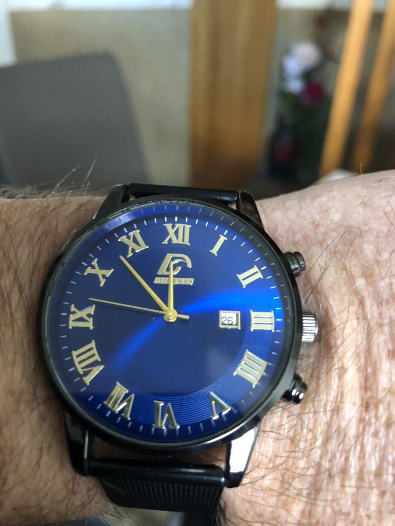 Tem um mostrador muito bonito e os algarismos romanos parecem muito bons e funciona bem agora estou vendo como colocar o calendário, espero que funcione também, obrigado jom, espero que meu marido goste