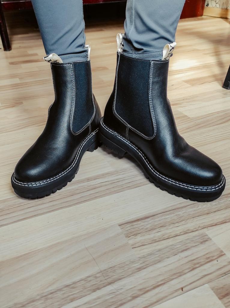 Botas femininas processadas de couro genuíno moda estilo britânico botas chelsea tamanho grandeAdequado para primavera, outono e invernoBotas femininas