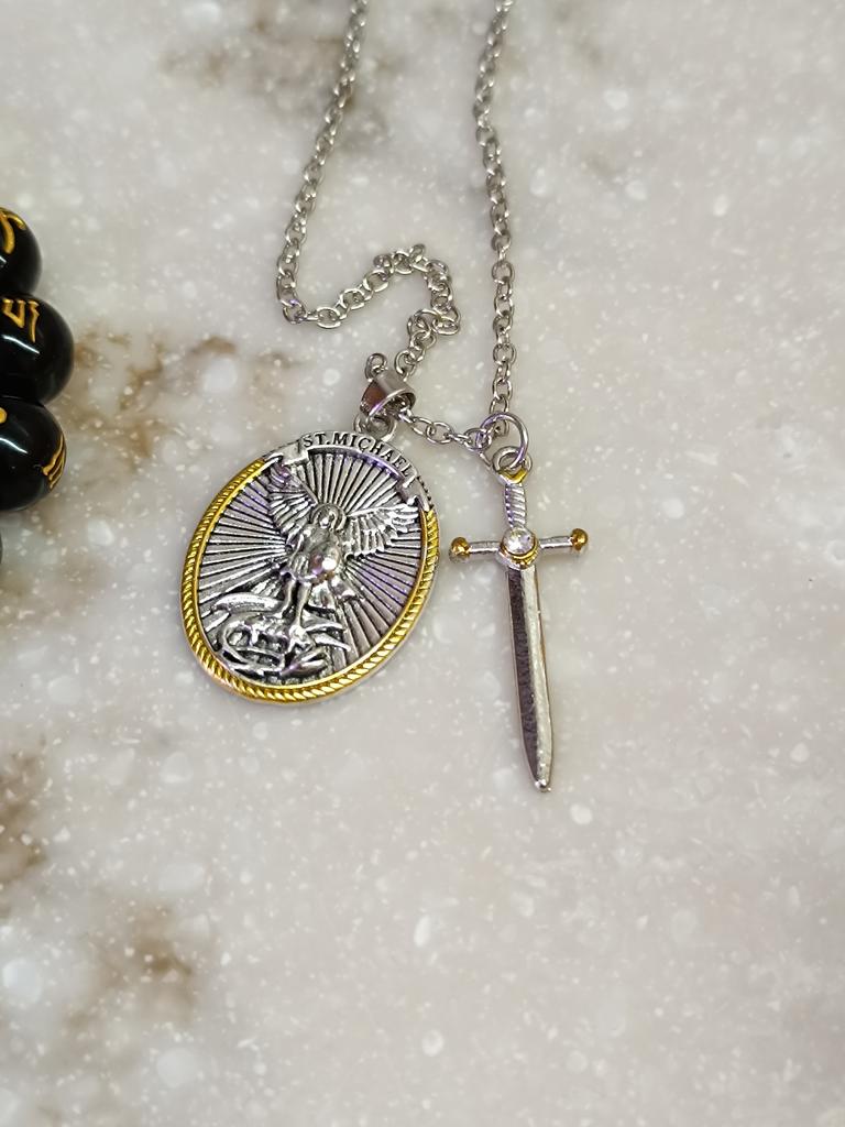 Colar com pingente de santo padroeiro católico Michael St. Michael The Archangel