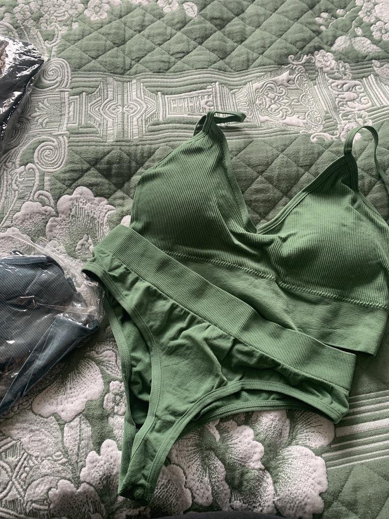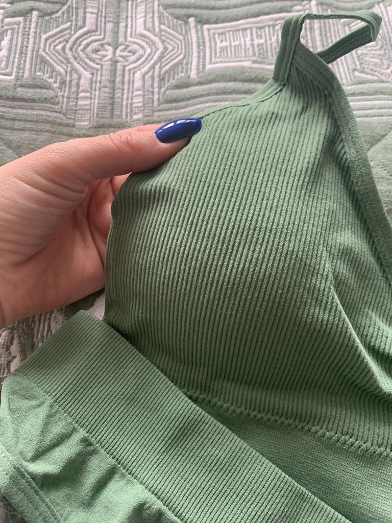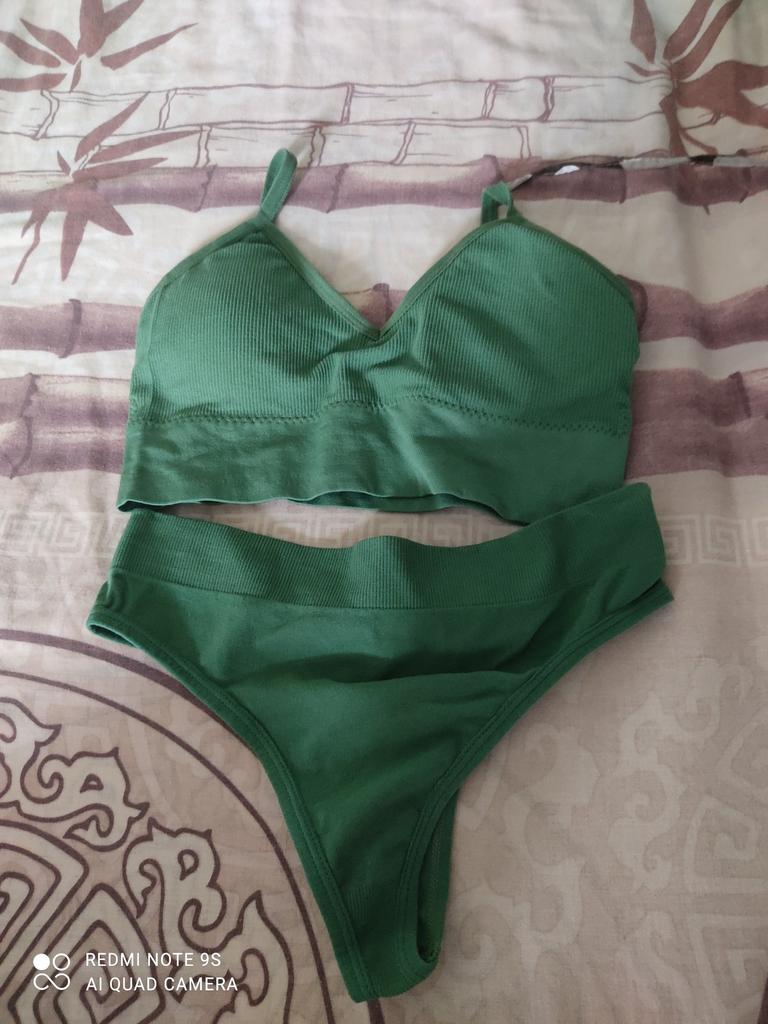 E aqui vem a cor verde. Conjuntos muito legais: alta qualidade, confortáveis, elegantes e muito baratos! Compre meninas, você não vai se arrepender.. ‼️Peça apenas um tamanho a mais, pois são pequenos 🥀