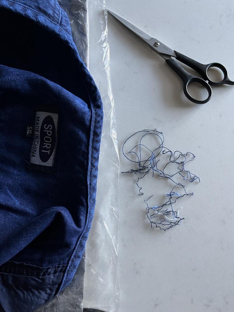 Que porco costurou isso, nunca vi antes... BOLSOS COSTURADOS !!!, a cor só lembra remotamente o jeans, estou dissuadindo todos os futuros clientes de comprarem este produto...!!!!!, meu tamanho normal é 3XL, comprei 4XL e para mim é pequeno...🤮