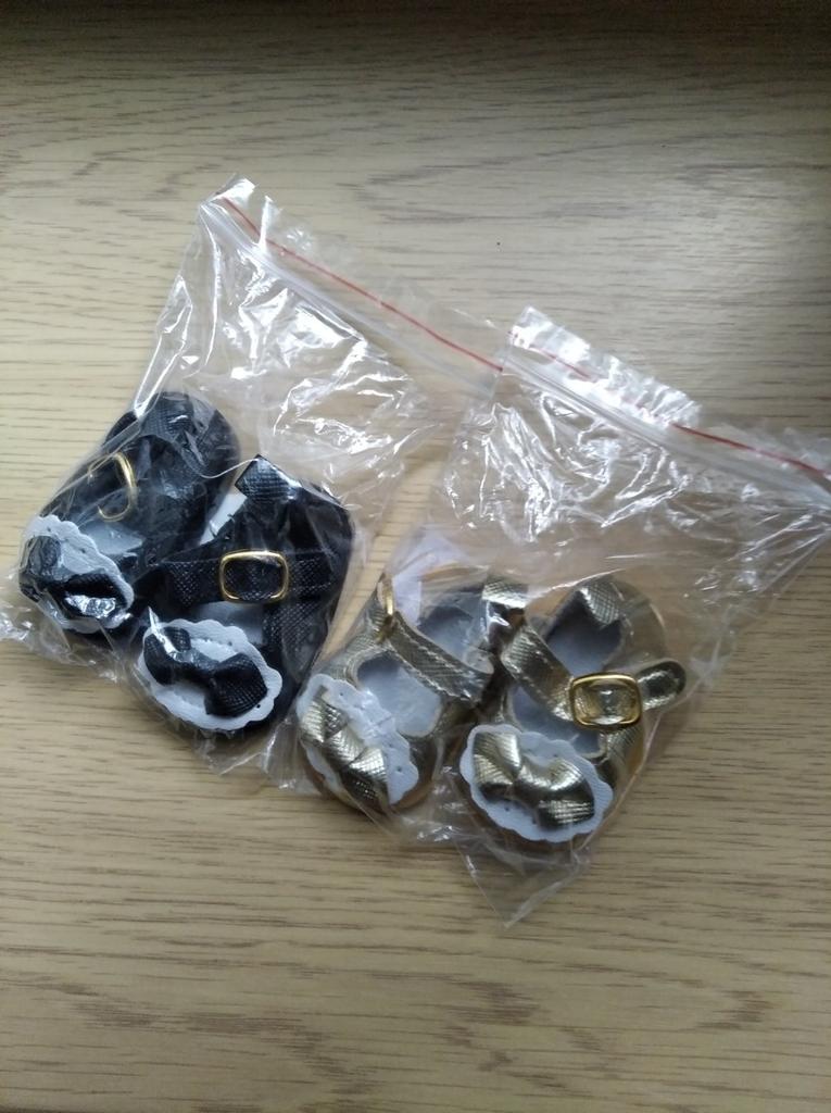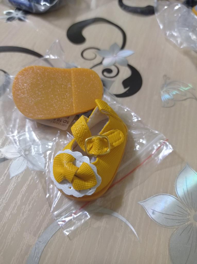 Os sapatos de boneca são bem pequenos, mas bonitos.