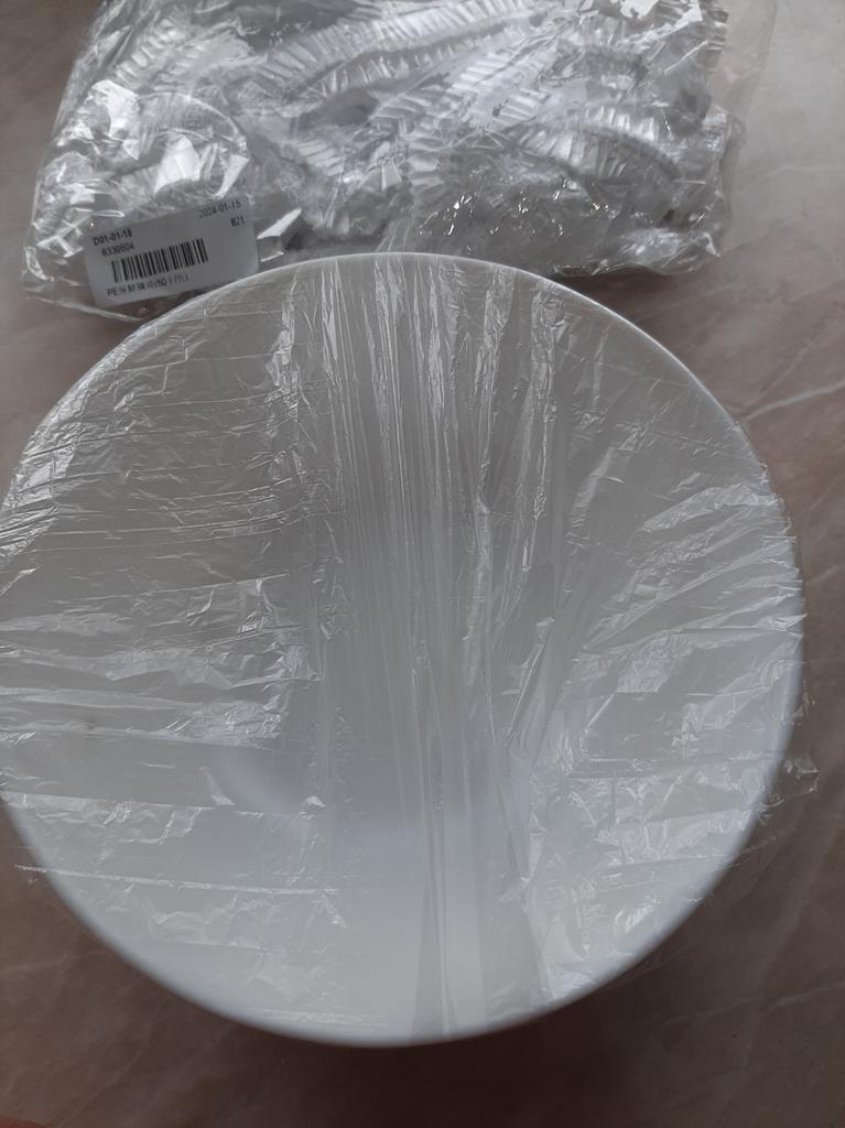 Bem recebido. Plástico fino com elástico. Parece uma charlotte e pode cobrir um prato ou um prato. Higiene garantida. Para uso único? Mas a cinco cêntimos cada, substitui vantajosamente o filme. Rápido e conveniente. OBRIGADO