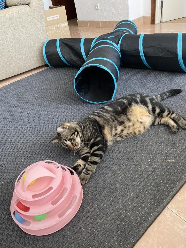 O brinquedo é ótimo 👍👍👍. A gata está ocupada e não nos incomoda...