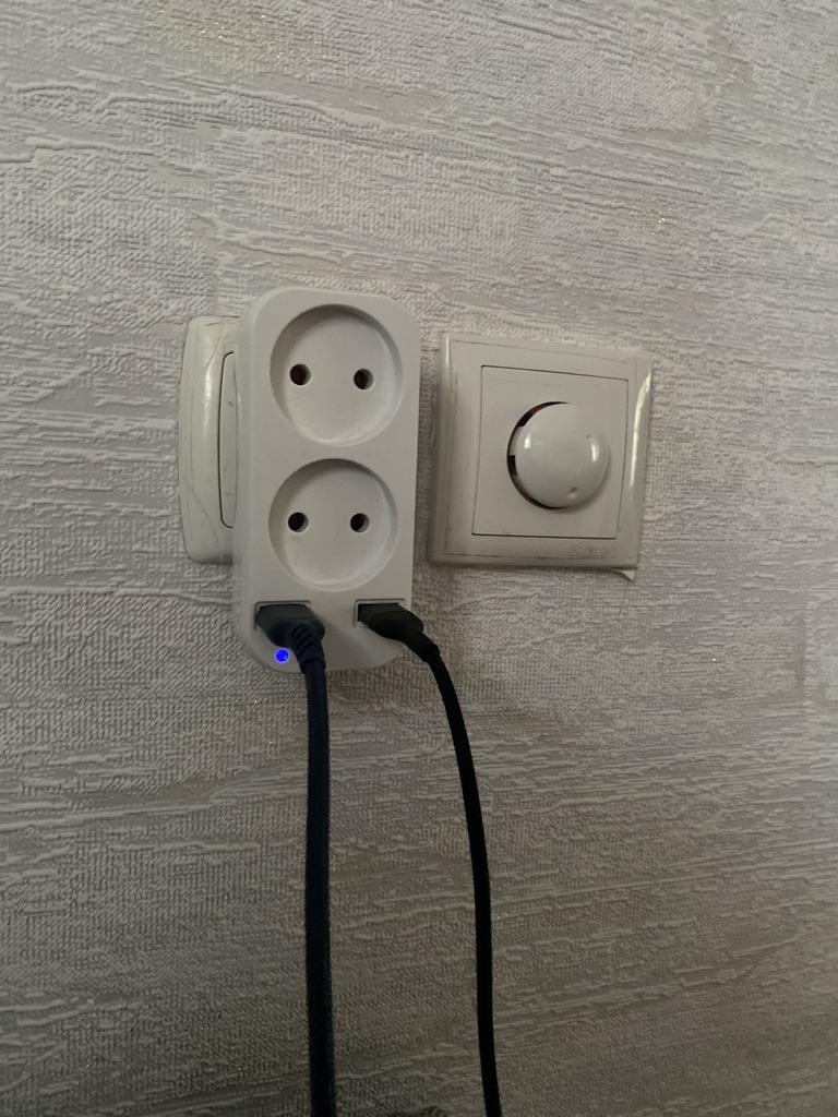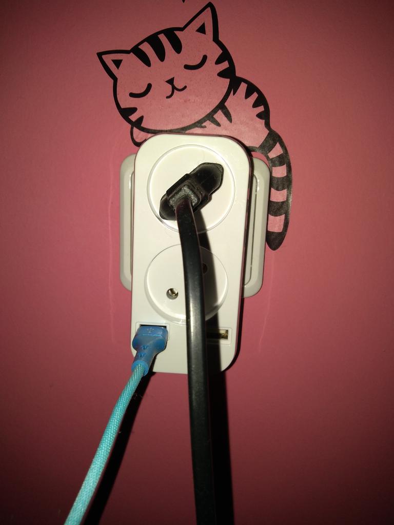 Coisa muito conveniente. Minha tomada é muito baixa para conectar qualquer coisa. E isso é outro assunto) isso está salvando diretamente os fios de torções.