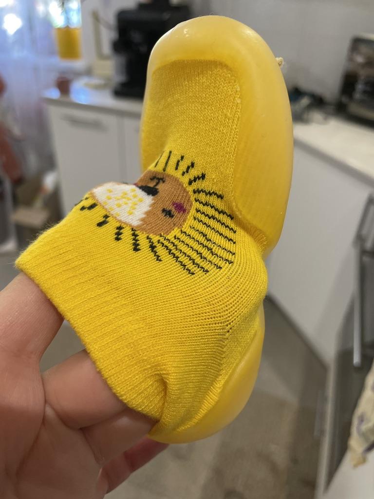 Muito legal, exatamente o que você precisa para seus primeiros sapatos! O forro é grosso, a meia respira, é tão confortável de usar quanto uma meia! Mas muito grande por 8 meses. O tamanho é de cerca de 10-12 meses