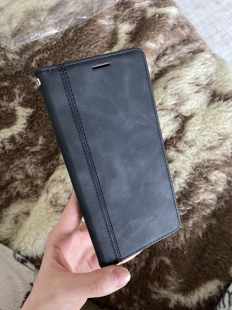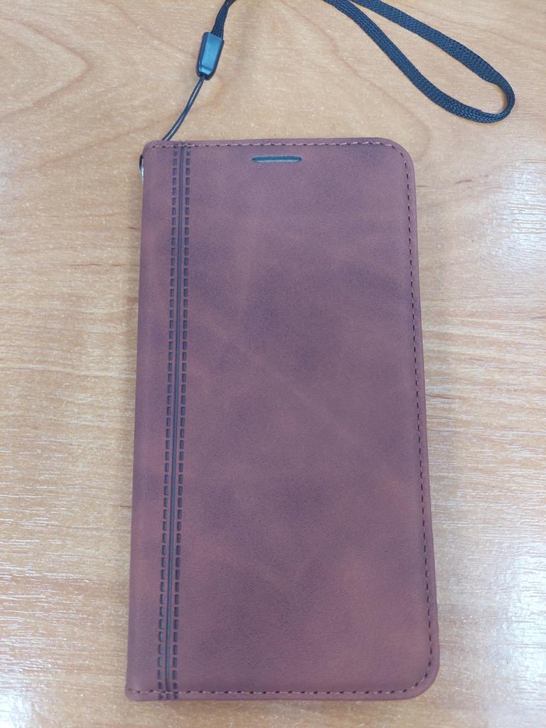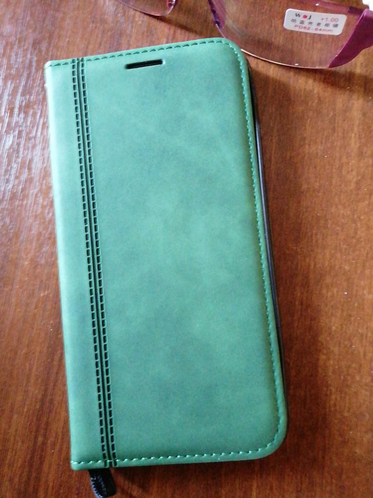 Uma capa de livro muito boa para o seu telefone, feita de material grosso e de alta qualidade, feita para parecer couro, com costuras de alta qualidade. Há um bolso para um cartão de plástico. Cabe perfeitamente no meu telefone. Eu recomendo.