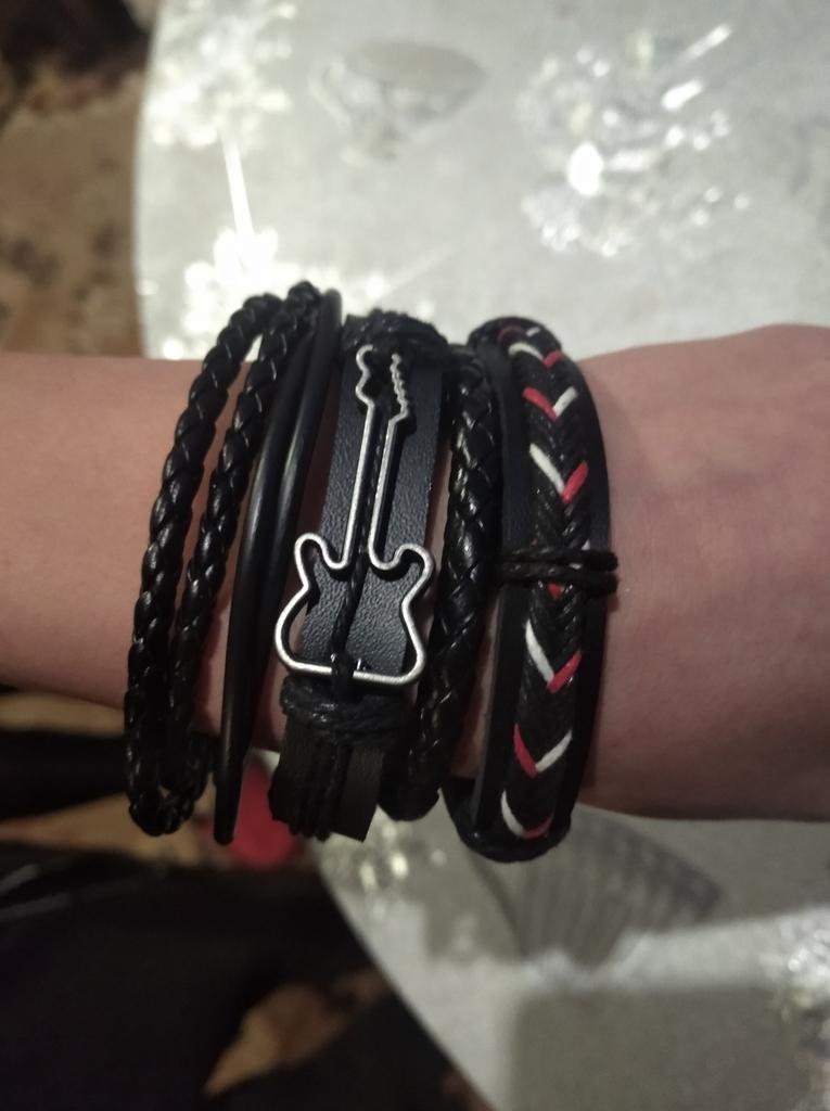 Que fixe, na verdade são quatro pulseiras diferentes. Combine como quiser. Brilhantes, de couro, tru tru😎🤘