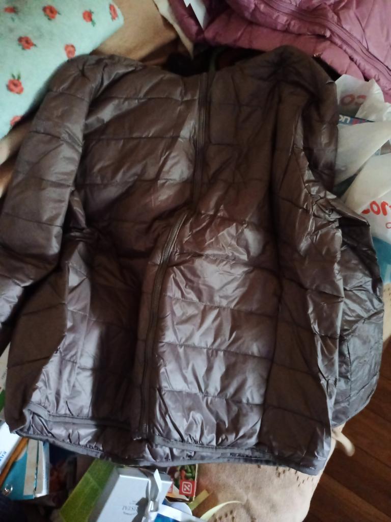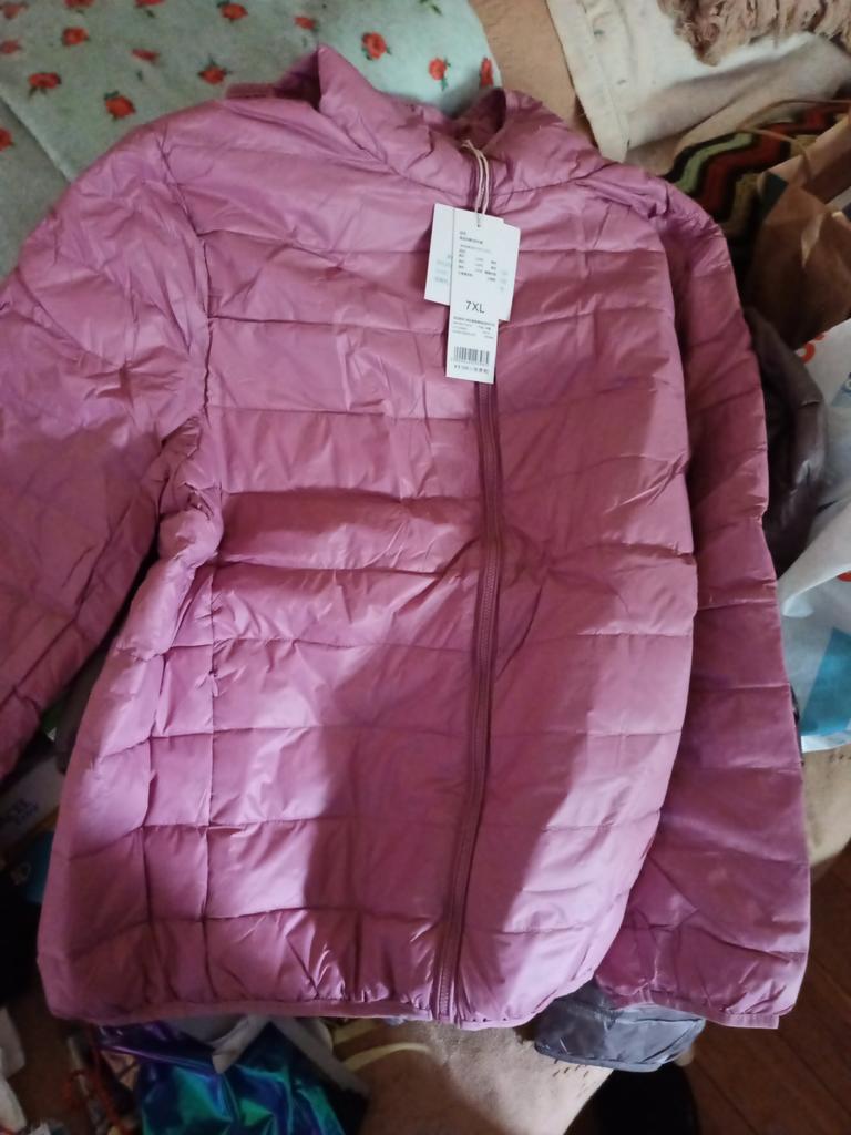 2XL para um tamanho 42 serve, apesar das mangas um pouco curtas, faltam 3 ou 4 cm Muito muito leve e quase sem penas, portanto, não o compre para se aquecer, é o equivalente a um colete para o exterior. O mais: 2 bolsos externos com zíper e 2 bolsos internos grandes para colocar o telefone ou uma carteira, é super prático