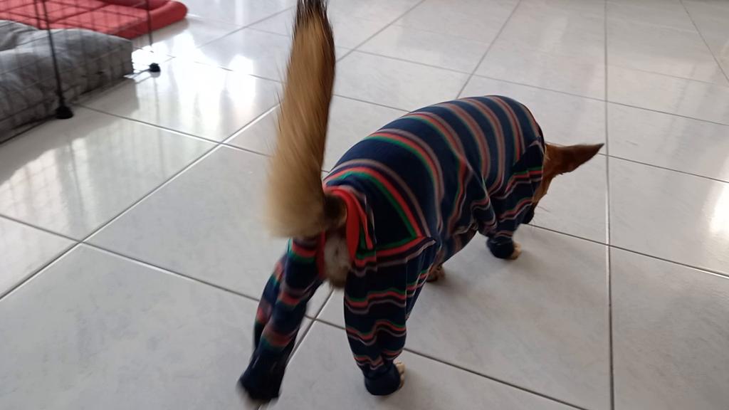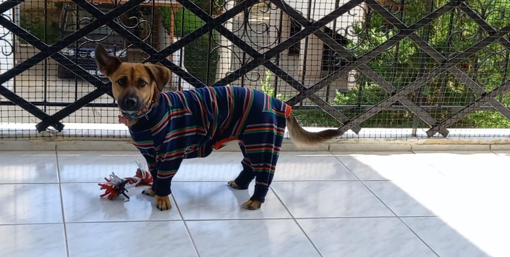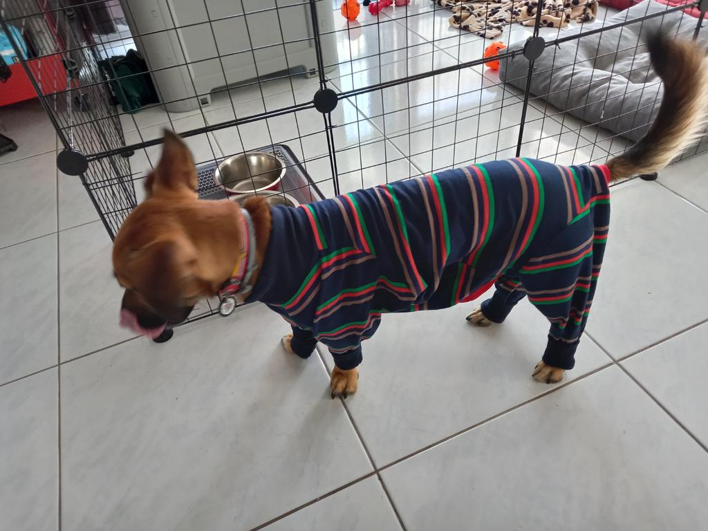 Para o meu Amstaff de 25kg o tamanho L é o algodão perfeito, macio e elástico, perfeito para a casa nos dias frios.