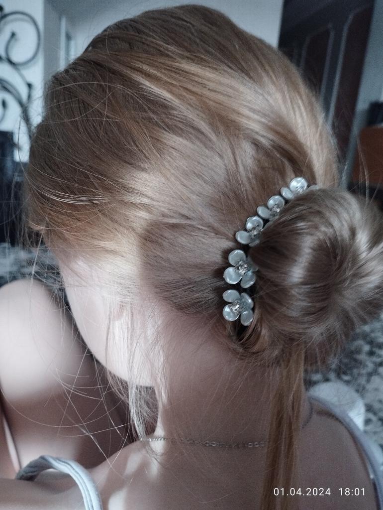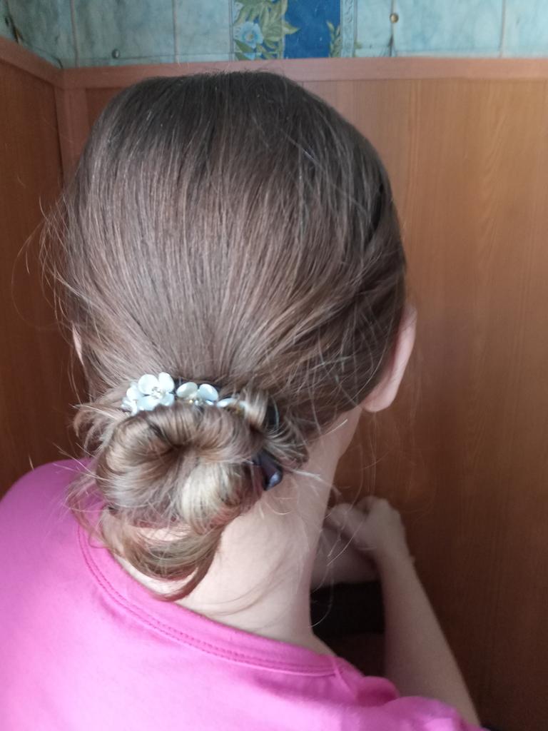 Parece um belo grampo de cabelo. Mas ainda não consigo fazer um penteado normal. eu vou treinar
