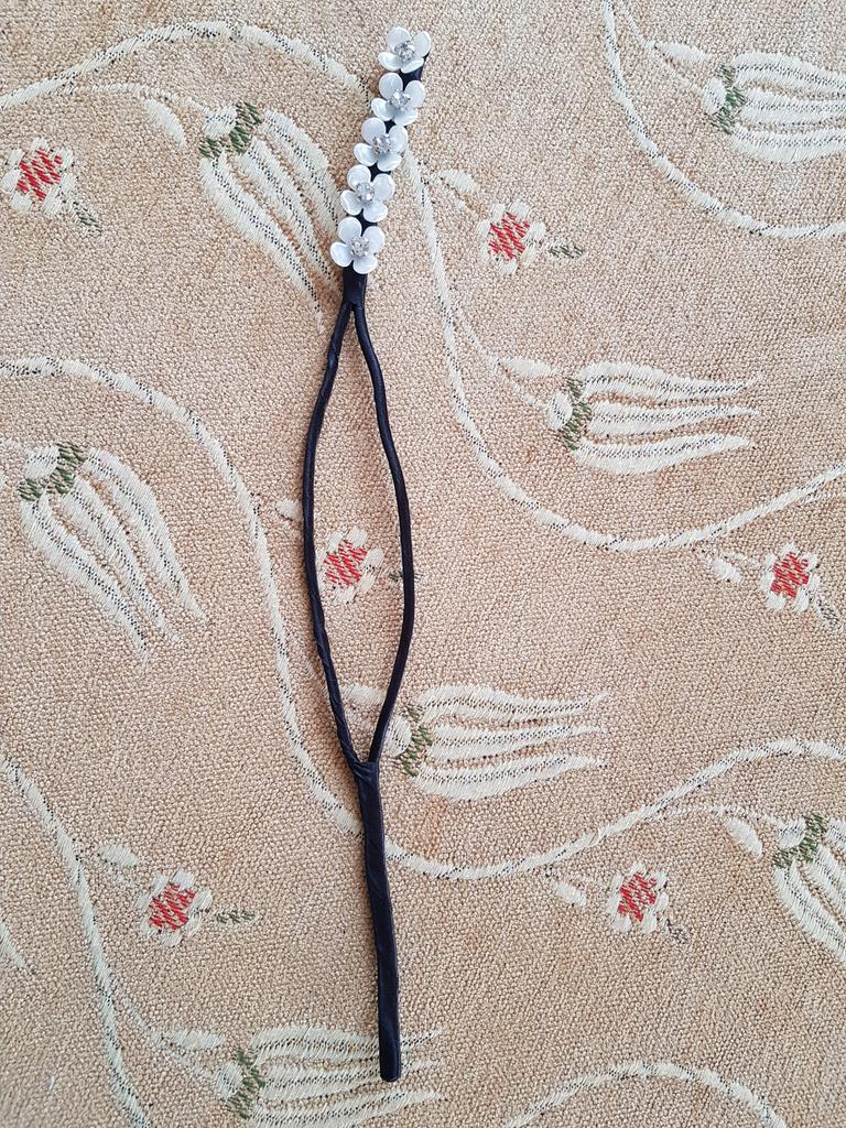 Obrigado, lindo acessório de cabelo. Na foto as flores são maiores, você precisa experimentá-las no trabalho.