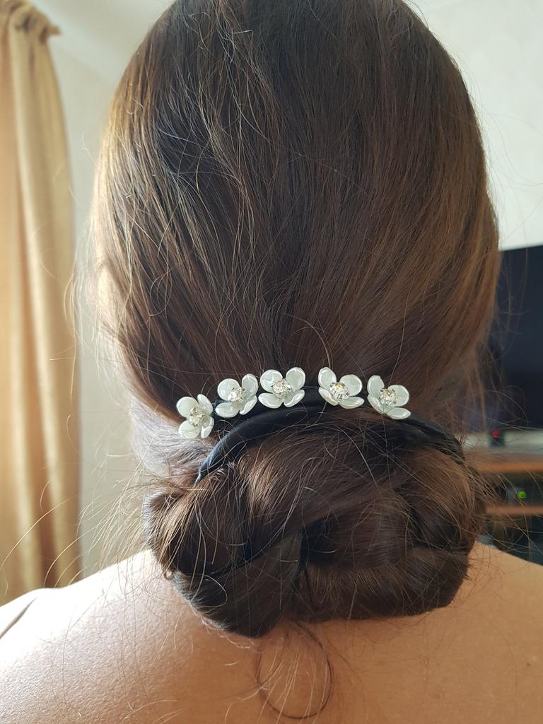 Complemento ideal para cabelos presos, elegante e informal ao mesmo tempo, fácil de colocar, de boa qualidade.😘. Obrigado