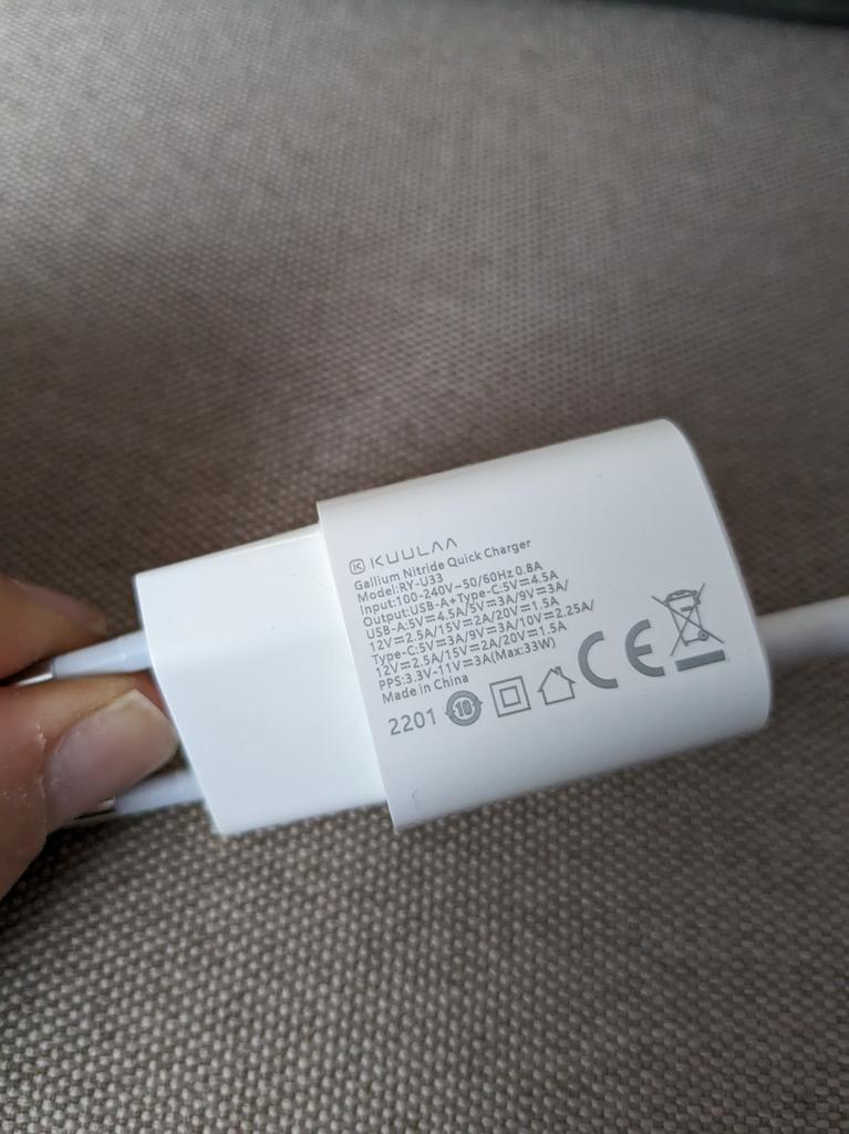O carregamento superrápido do meu Samsung S21 via USB-C. bonito e compacto. Entrega rápida Ele até carrega meu laptop Dell!!! Isso é tão incrível! Ele carrega devagar, pois fornece apenas 33W, mas os 20,5V podem ser usados para carregá-lo. ÓTIMO Isso o torna um carregador multifuncional versátil e supercompacto