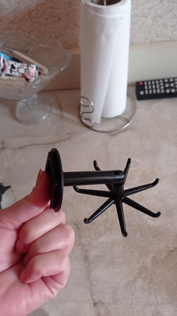 Eu queria pendurar meus óculos de sol em uma pequena bolsa de tecido, infelizmente o suporte estava no chão no dia seguinte. Certamente não é útil para ajudantes de cozinha