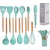 Utensílios de cozinha de silicone 12 tamanhos, resistente ao calor, antiaderente, ferramentas de cozimento, alça de madeira, conjunto com caixa de armazenamento