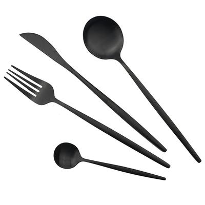 4Pcs Matte Black Gold Dinnerware Set Talheres de jantar Facas Garfos Colheres Colheres de chá 304 (18/10) Conjunto de talheres de aço inoxidável