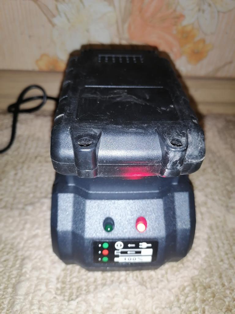 O carregador funciona bem até agora com uma bateria de 21 V quando totalmente carregado, o indicador verde acende e ao carregar 18 V