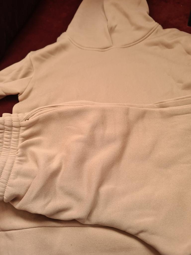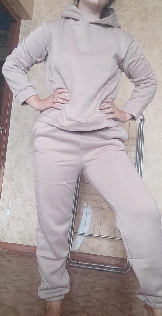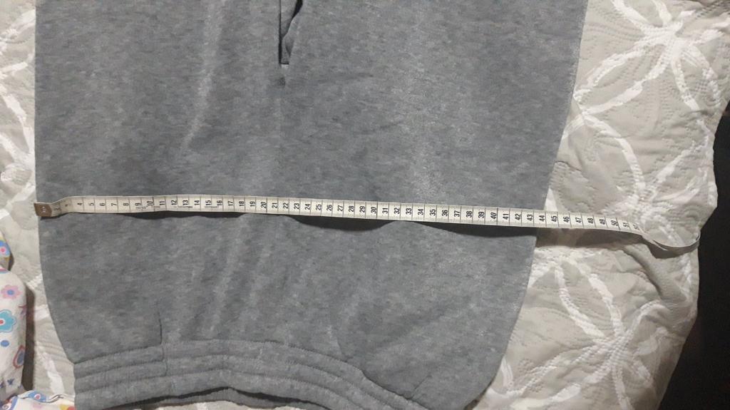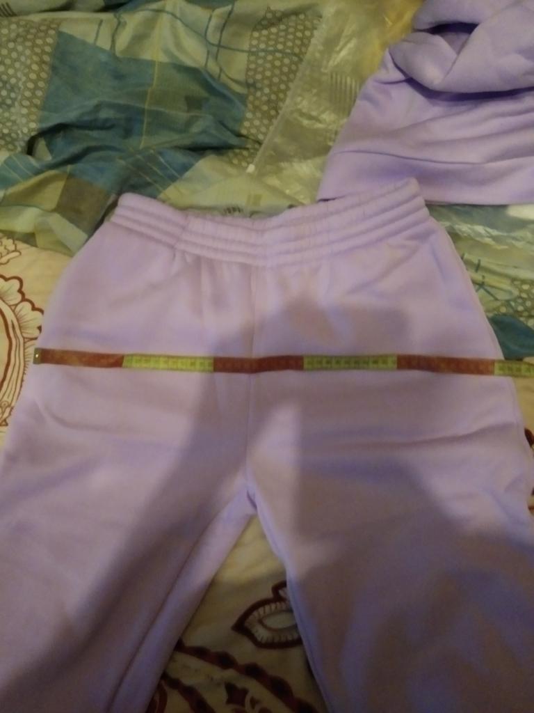 Não é um terno ruim. Por esse preço eu esperava qualidade abaixo da média. Não se assuste: a pista não foi rastreada por quase um mês. Há um pequeno backcomb, adequado para a primavera - outono. Até agora só vi 2 pontos negativos: a calça parecia um pouco pequena na cintura (provavelmente é muito alta); não há cadarços no moletom para apertar. As medidas mostradas na foto são tamanho L.