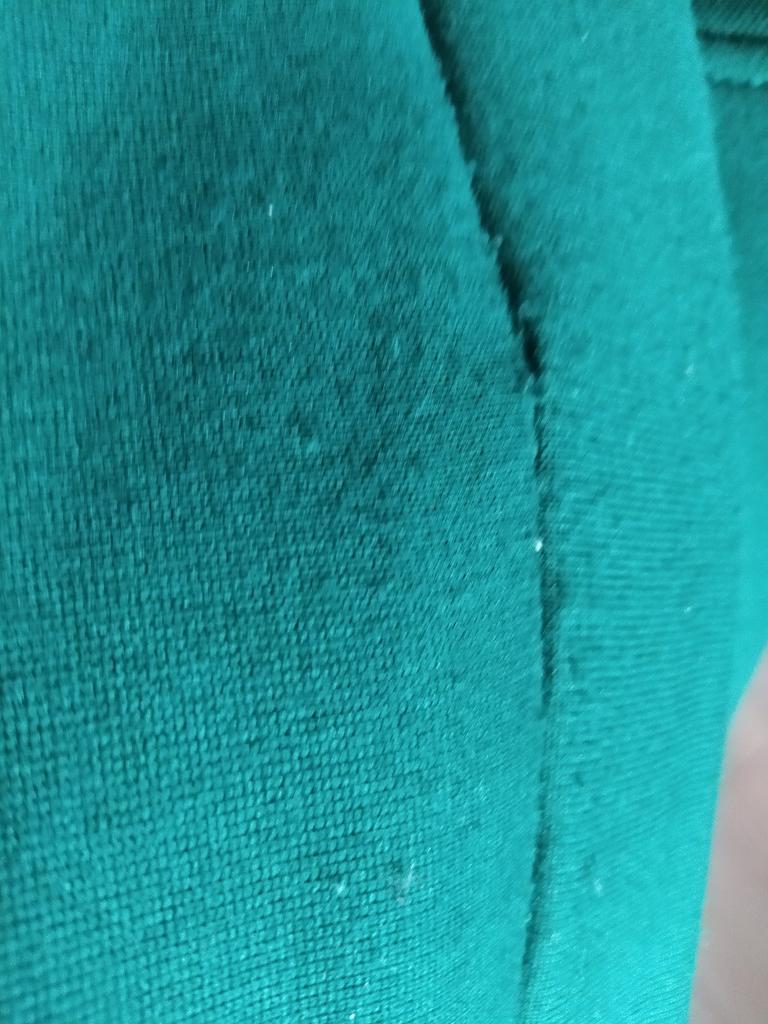 O tecido parece estranho, considerando que é suposto ser algodão. Estou curioso quando o terno volta da lavanderia. E para L bem pequeno apesar do fato de eu geralmente usar M