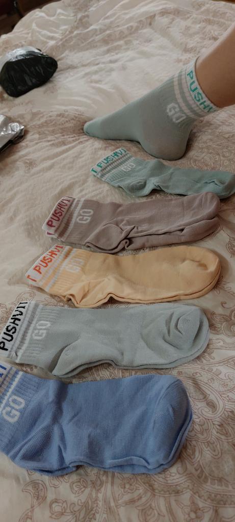 Um conjunto de meias lindas e brilhantes 👍 São 5 pares no total ☝️ Cores diferentes 🤗 Você pode escolher a cor que quiser 👌 Material combinado: algodão, poliéster, elastano 💯 As meias são macias, leves, elásticas 👌 Tenho tamanho 37, comprimento do pé 24 cm, as meias cabem perfeitamente 👍💯 Eles vão esticar ainda mais, eu acho, até o tamanho 39 🤔 Então eles ficarão costas com costas ou mais finos ☝️ A qualidade é excelente 👍, não há defeitos 💯 Recomendo 🤗comprar: meias excelentes para o dia a dia 👍