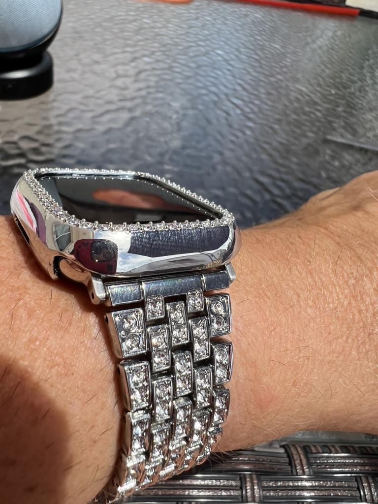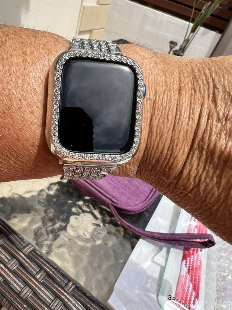Pulseira para Apple Watch SE ✌️ Eu comprava esses para o modelo anterior dos meus relógios, mas aqui errei um pouco no tamanho, pedi XS, eles pressionam forte. A qualidade da pulseira em si é excelente, é fácil de colocar, estica perfeitamente 🤩 Recomendo, mas escolha com cuidado o tamanho ❤️
