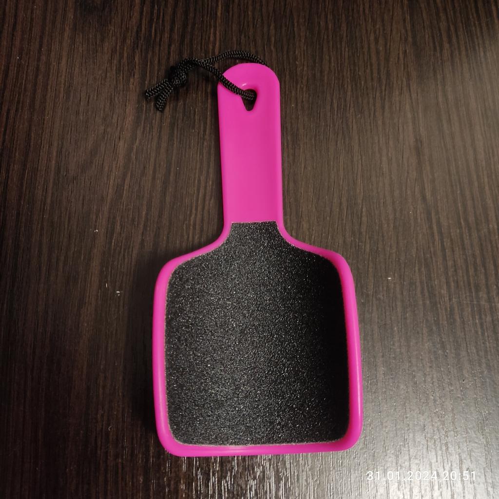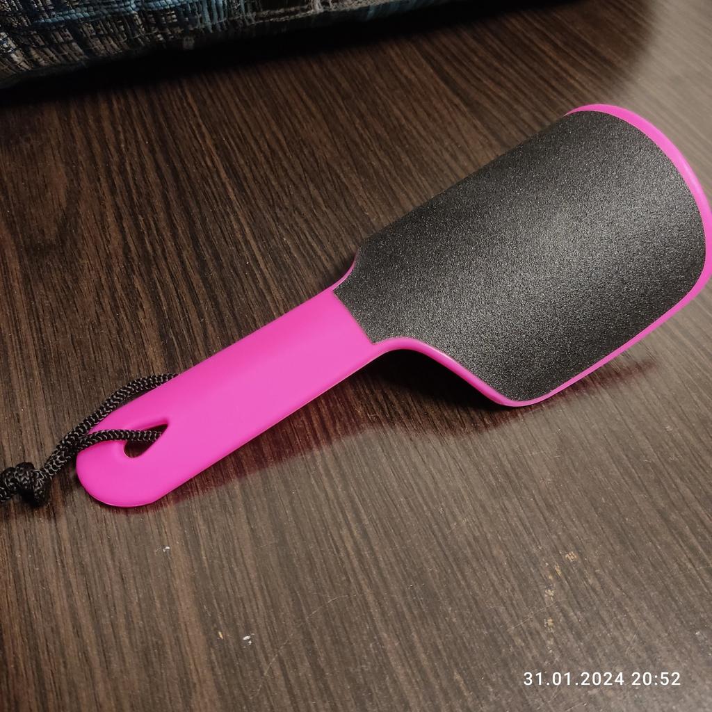 Lima para tratamento de calcanhares e pés, dupla face, levemente dobrada, que facilita o processo de esfoliação da pele dos pés, 20x9cm. Eu recomendo.