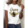 Camiseta Top Moda Verão Mulheres Estampa Camiseta Bee Lovely Doce Primavera Senhora Roupas Femininas Casual Manga Curta Camiseta Gráfica