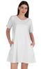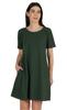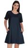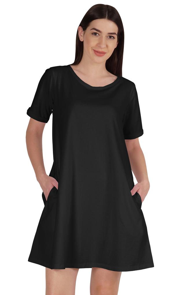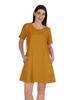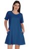 * Recursos: Cores lisas, mangas curtas, decote redondo, estilo swing, comprimento curto com dois bolsos laterais.