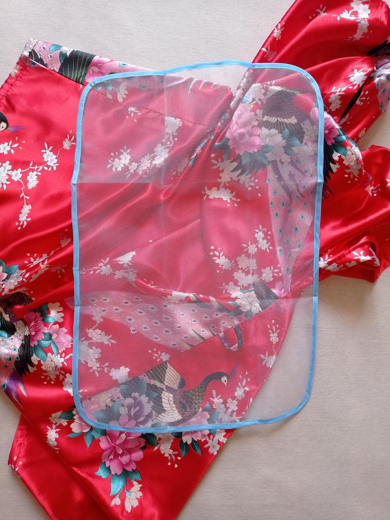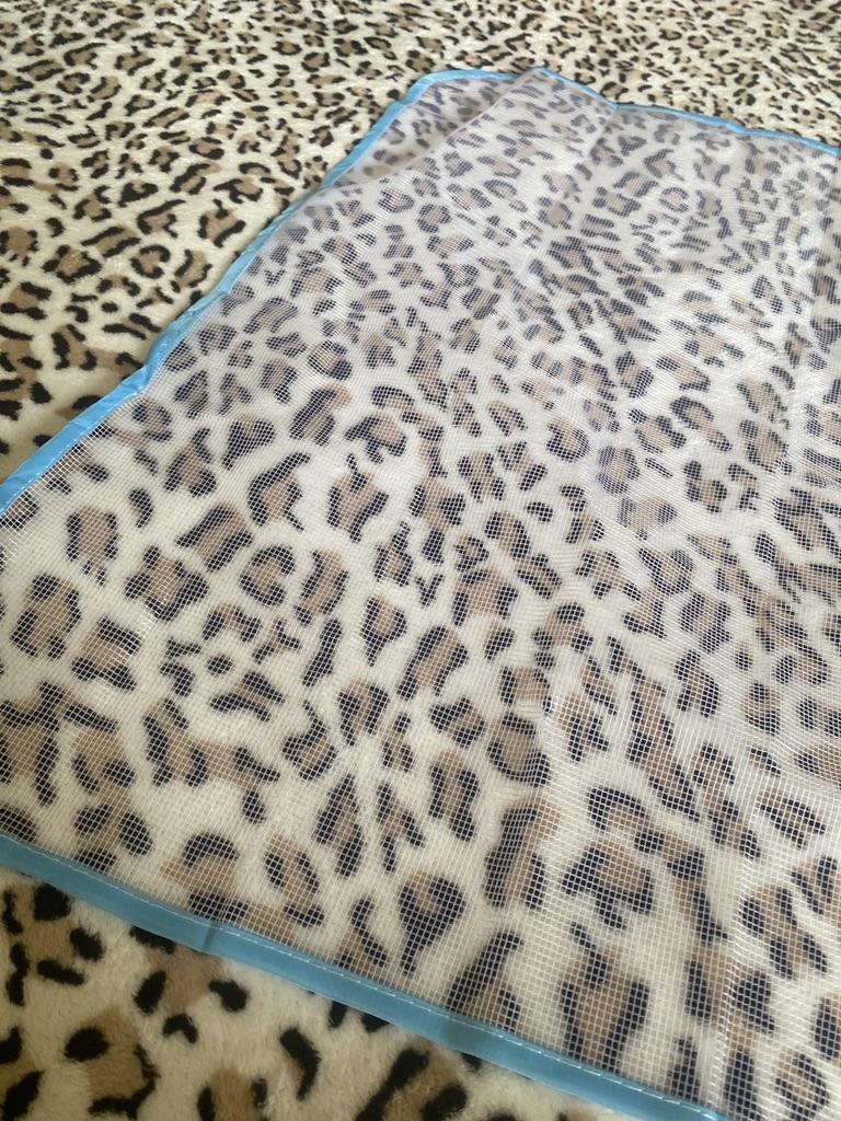 A tela é bem grande, feita de malha sintética, ainda não tentei passar, espero que não derreta em alta temperatura.