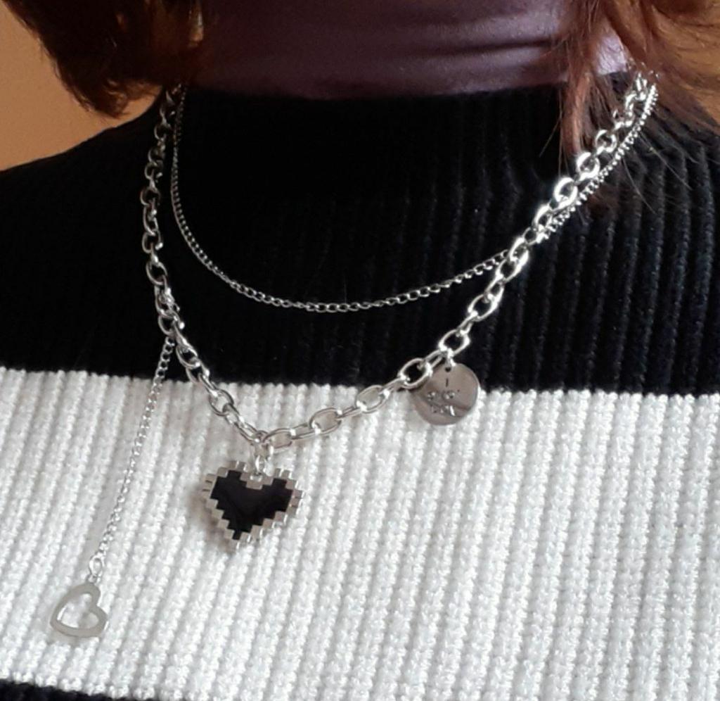 Punk sênior moda feminina pingente colares fino duplo link corrente de metal coração festa colar jóias presente