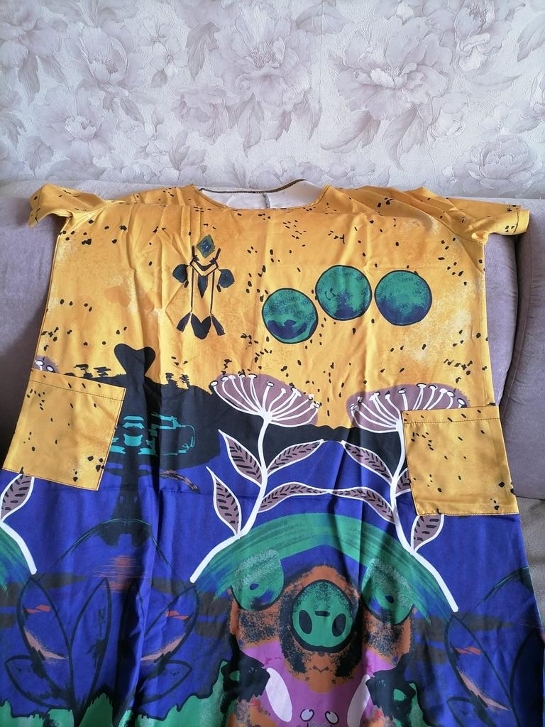 Muito bonito, com drapeados soltos e cores ricas. Eu facilmente encurtei 15 cm para torná-lo mais confortável e adequado para o uso diário