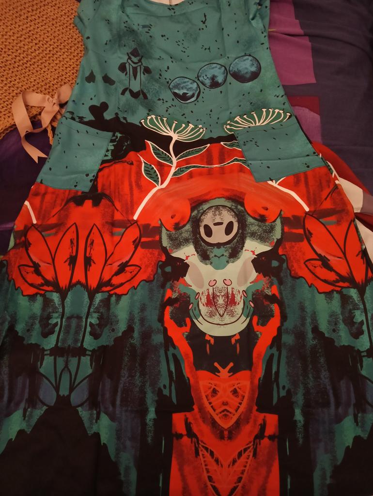 Em geral, o vestido não é ruim, se você não olhar atentamente para o enfeite - há uma surpresa esperando por você dos nossos amigos chineses. O padrão do enfeite consiste em entidades distintas com chifres, e você não verá nada disso na foto da loja. A textura do tecido lembra uma cortina de banheiro.