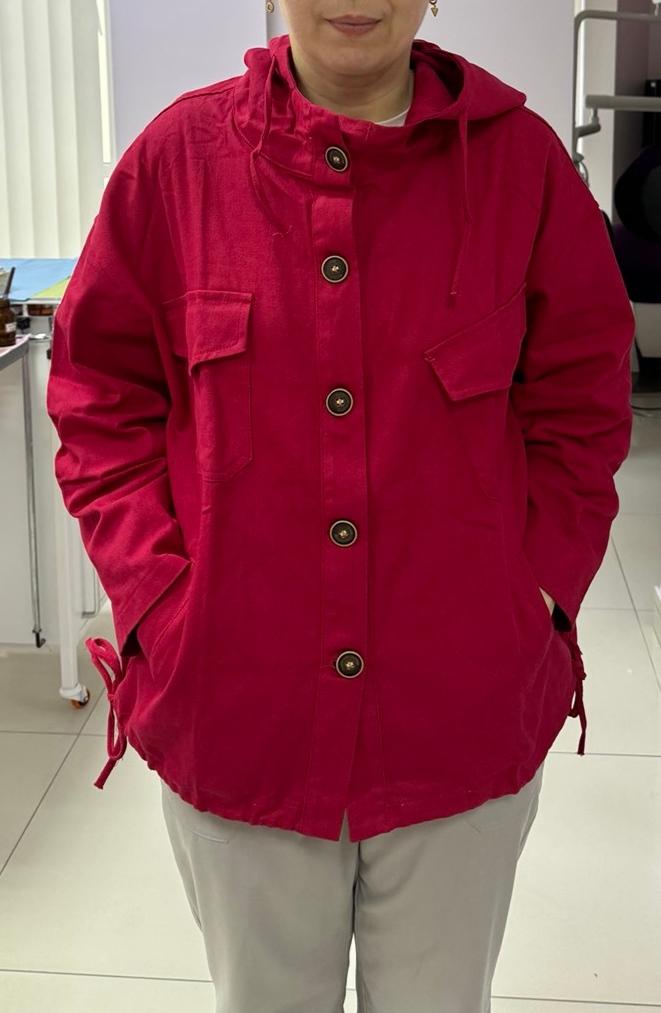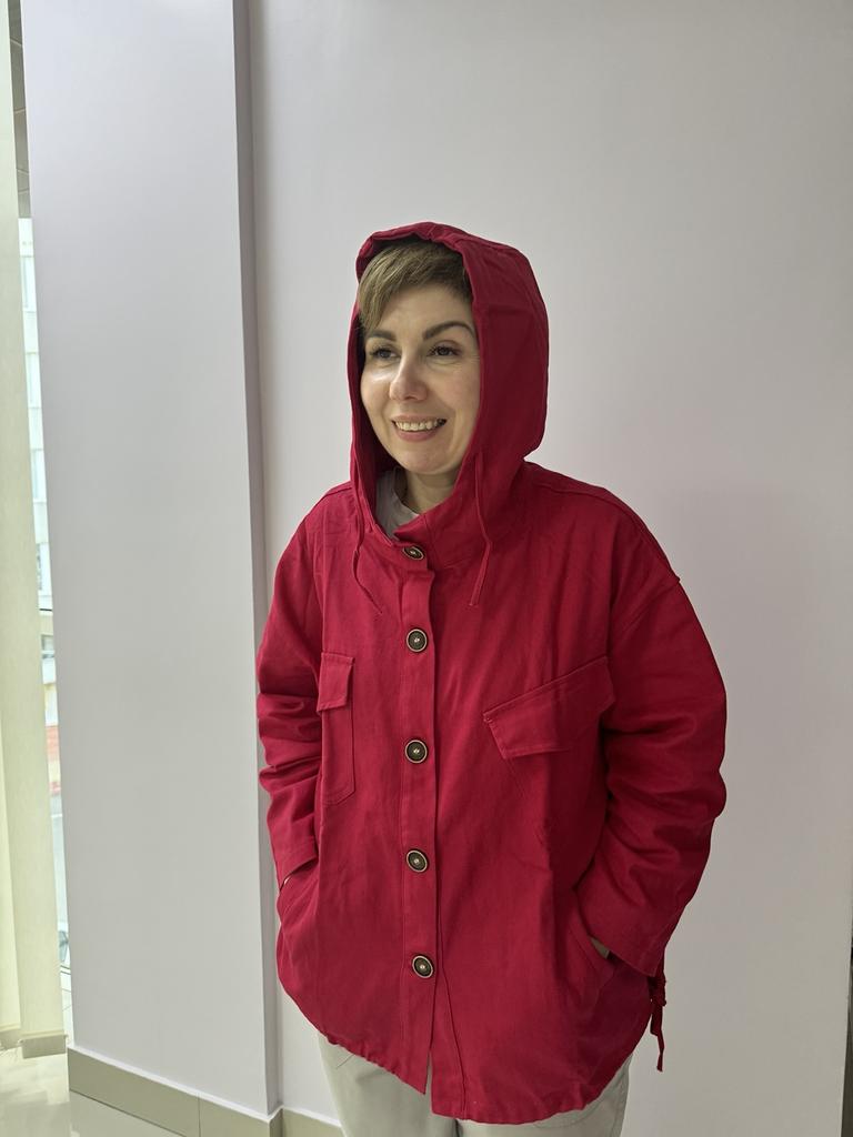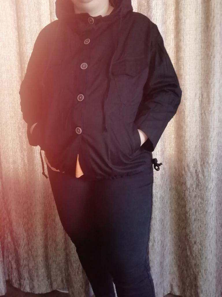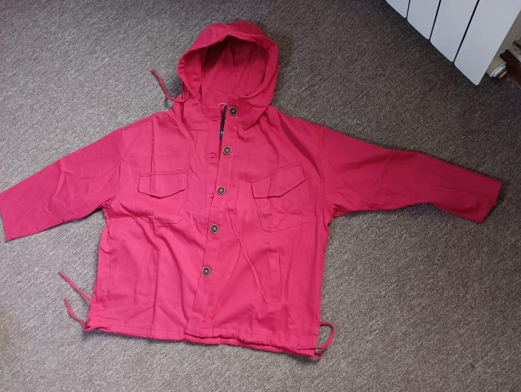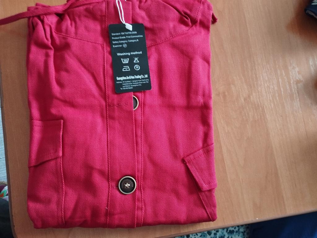 Excelente jaqueta, cor bonita e brilhante. O modelo é muito confortável, o material é algodão. Parece elegante, eu gosto 😊