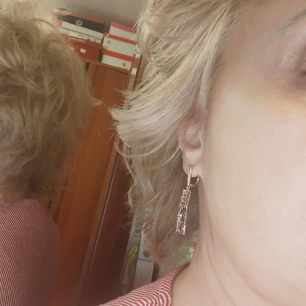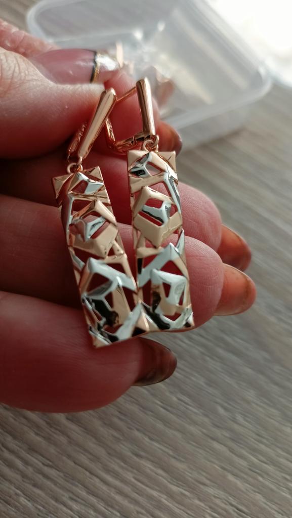 Lindos brincos. Cabelo de metal precioso - o revestimento é impecável. Eles têm um brilho especial. Tamanho ideal. Sistema de fecho fácil, seguro e funcional. Fera satisfeita, recomendo vivamente, principalmente aos fashionistas