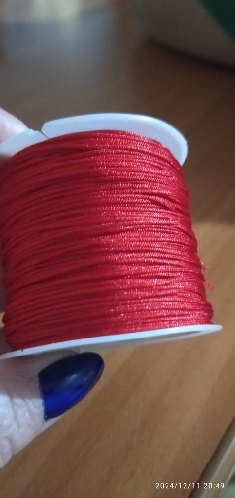 O pacote foi entregue a tempo. Peguei quatro cores. Mas o cordão não é de algodão e sim sintético! A cor é brilhante.