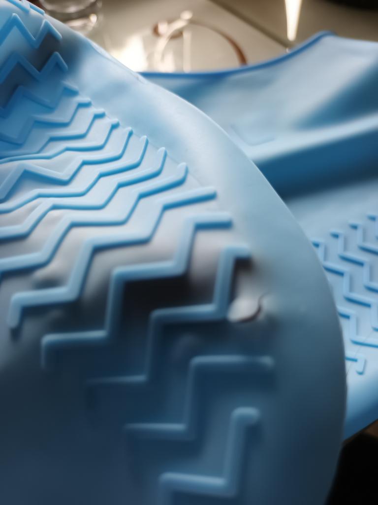 O material é de borracha, como um balão e infelizmente não durou 5 minutos em pés/sapatos infantis. Imediatamente teve vários buracos e depois é claro que a água e a lama / lama passaram.