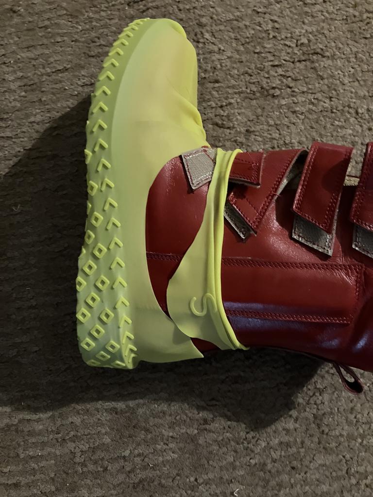O produto cumpre sua função. Cabe sobre calçados esportivos. No início, as crianças tiveram dificuldade para calçá-los. A cor é uma vantagem adicional.