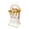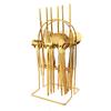 Jankng Gold 24Pcs Western Dinnerware Conjunto de talheres de aço inoxidável Faca Garfo Colher de café Conjunto de talheres com suporte de armazenamento de luxo